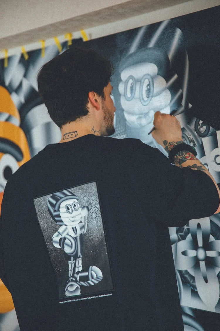 Geoffrey Bouillot is a contemporary French artist based in Tokyo since 2011. His work uniquely merges Japanese and Western cultural influences. Known for his mechanical and modular style, he deconstructs and reinterprets pop culture icons through an aesthetic shaped by cubism, futurism, and pop art.