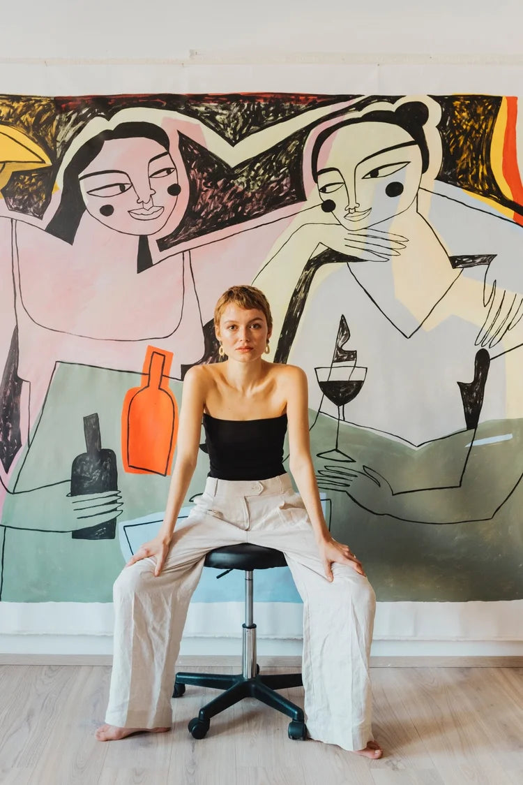 Hannah Müller-Hillebrand (Mühi) is a contemporary artist currently based in Berlin. Born in 1996 she grew up in the south of Germany with a huge passion for creativity and art. After finishing her bachelor degree of design at Fh Potsdam in 2020, she now works as a full time artist and content creator. Most of her work is very intimate and is often linked to a personal experiences or emotions that she has experienced as a woman.