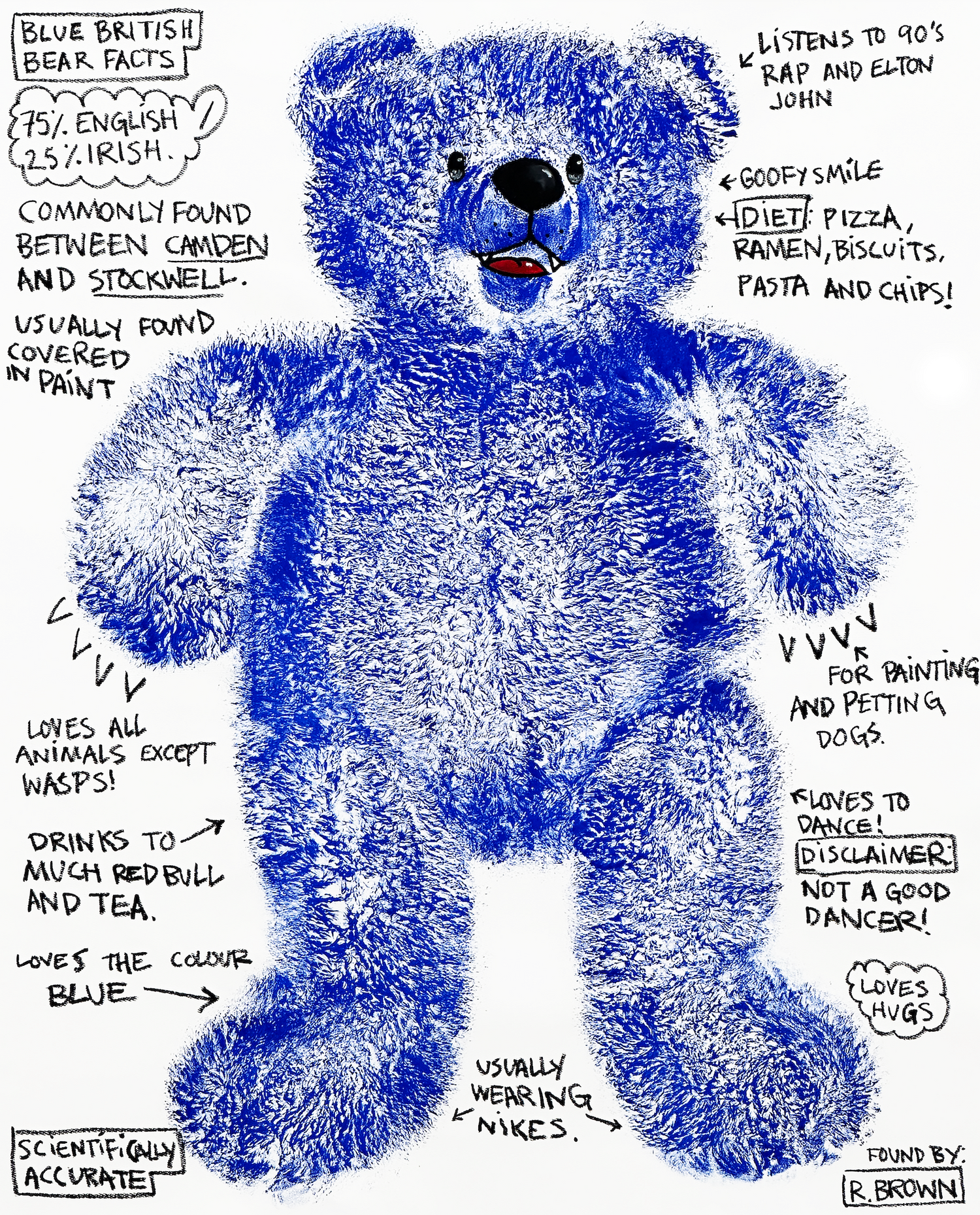 Rhys Brown (1993) is a contemporary creative, born and raised in South London. Finding his inspiration from found objects and everyday observations, Rhys began his artistic practice as a young teenager, tagging his local streets and memorialising overheard conversations on the walls near where they’d taken place. Through formal art education and the passage of time, Rhys’ practice has evolved from graffiti to sculpture, printmaking, painting (including the development of his unique, self-described “vegan gyotaku” relief printing method) and other media. Rhys’ work has been sold and exhibited internationally, including in London, Paris, Seoul, and Taipei."
